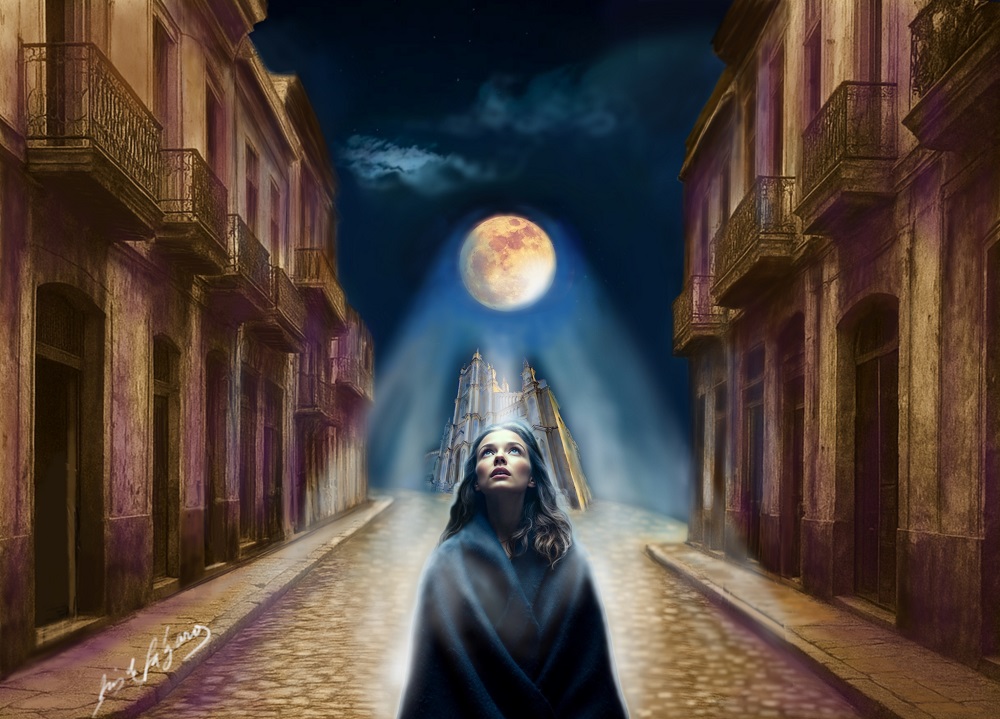 Cuentan que, en la Loma del Ángel, en La Habana Vieja, una noche al año el cielo se alumbra con colores naranjas sobre el azul intenso del firmamento. La luna comienza a descender muy despacio, los perros callan, las ventanas se entornan y un silencio antiguo se posa sobre las piedras. Es una luz que no quema: acaricia.